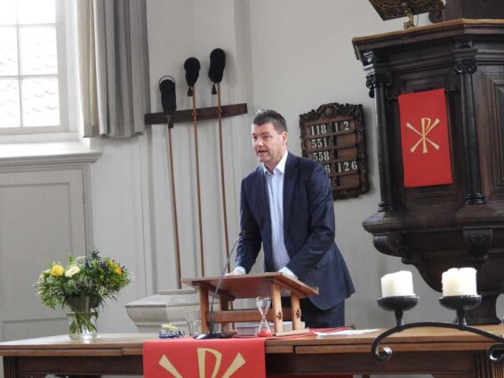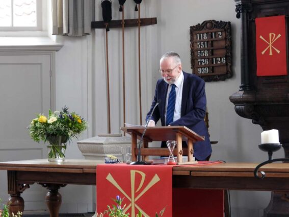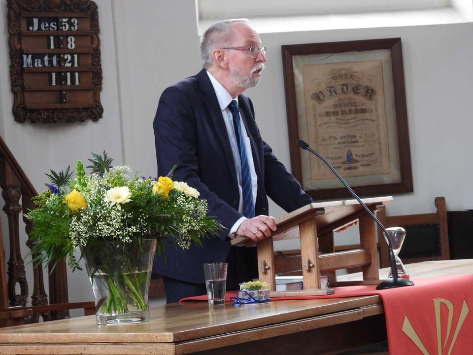 Dominee Roelof Kloosterziel verrichtte de aftrap van deze bijeenkomst om de overdracht officieel te bekrachtigen. Hij heette de aanwezigen welkom en toonde zich verheugd dat de restauratie van het orgel net voor de Kerst voor bijna 99,9% kon worden afgerond. “Op Kerstavond klonk het orgel weer en dat is toch anders dan het pianospel wat we tijdens deze restauratieperiode hoorden. Het ‘Ere zij God’ met de begeleidende klanken van dit orgel klinken majestueuzer en sfeervoller,” laat Roelof Kloosterziel weten, “Daarnaast klonk voor het eerst de Trompet, die nu ook een plek in de orgelkast heeft gekregen. Zelf heb ik het als heel bijzonder ervaren dat ‘de registers opengetrokken konden worden’ en ik hoor duidelijk het verschil na en voor de restauratie. Ik wil dan ook alle betrokkenen van harte feliciteren met het resultaat. Natuurlijk kenden we als Kerkenraad onze (financiële) zorgen, maar we bleven hoopvol en nu blikken we dankbaar terug op deze periode. De restauratie is nagenoeg afgerond en we kunnen hiermee nog jarenlang genieten van de prachtige klanken van dit Berner orgel.”